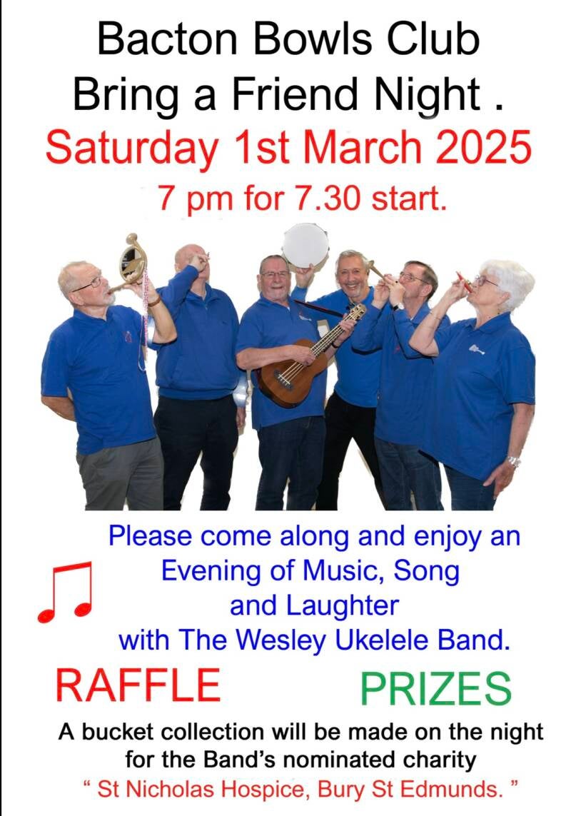 A huge thank you to the Wesley Ukelele Band, who gave us a great nights entertainment. A well supported event which really caught the imagination, with a number of members joining in (looks like Karaoke is on the menu now).
